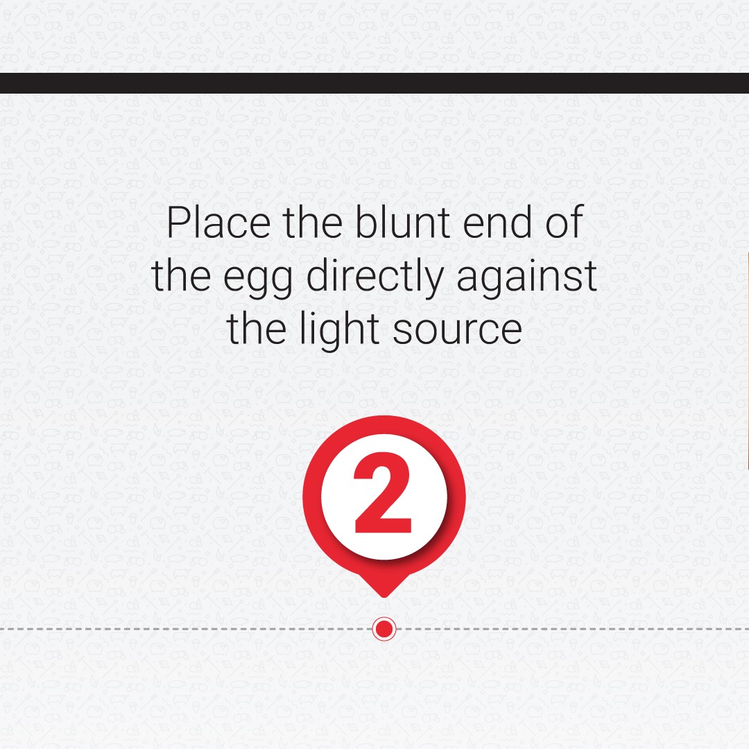 - The blunt, larger side of the egg should be placed against the light source so that the contents of the egg is made visible.